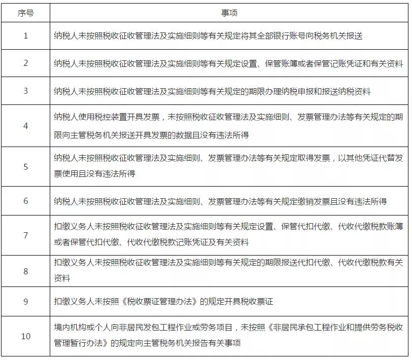 关于发布《税务行政处罚“首违不罚”事项清单》的公告